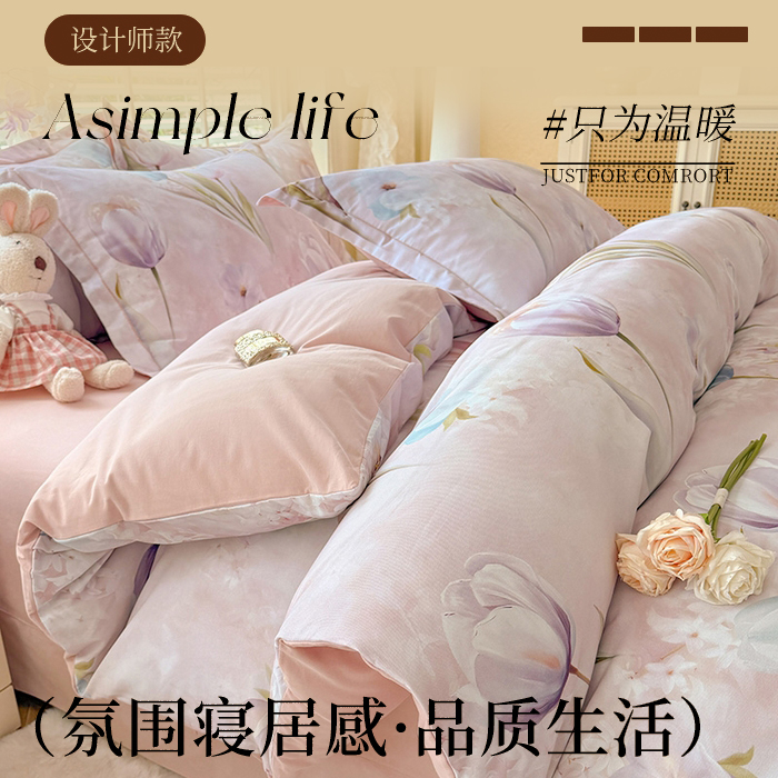 (总)多乐家纺 2025新款秋冬韩系花卉舒柔棉印花四件套